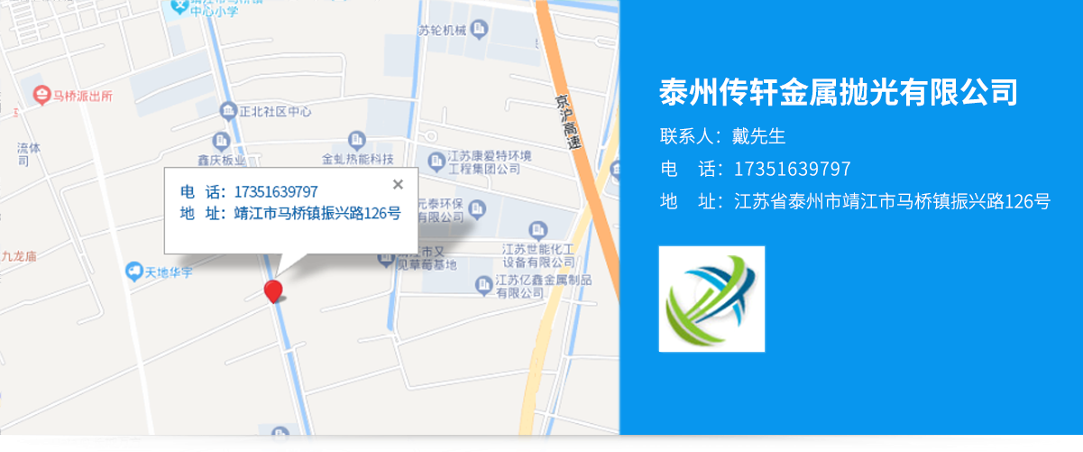 泰州傳軒金屬拋光有限公司位于江蘇省泰州市靖江市靖江市馬橋鎮振興路126號,交通便利。